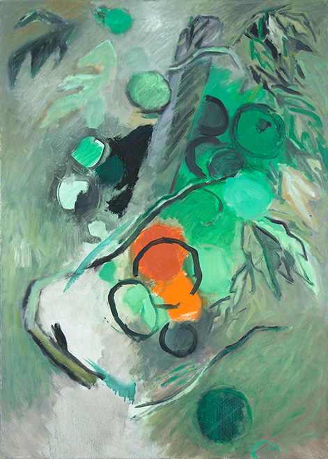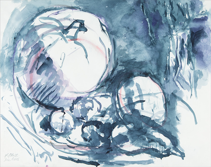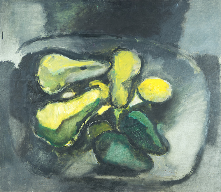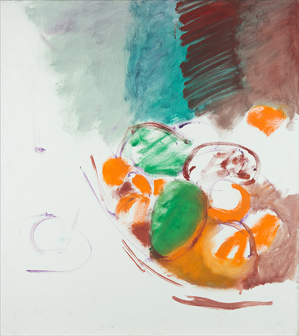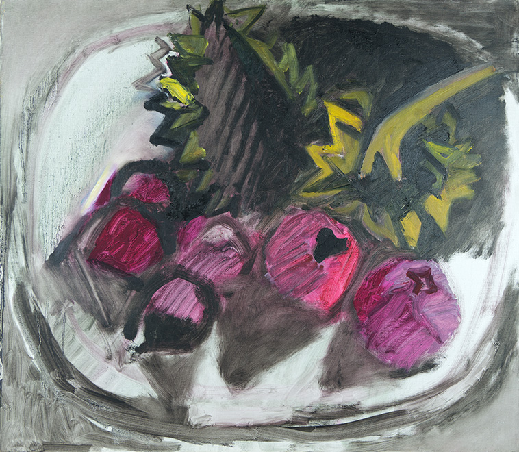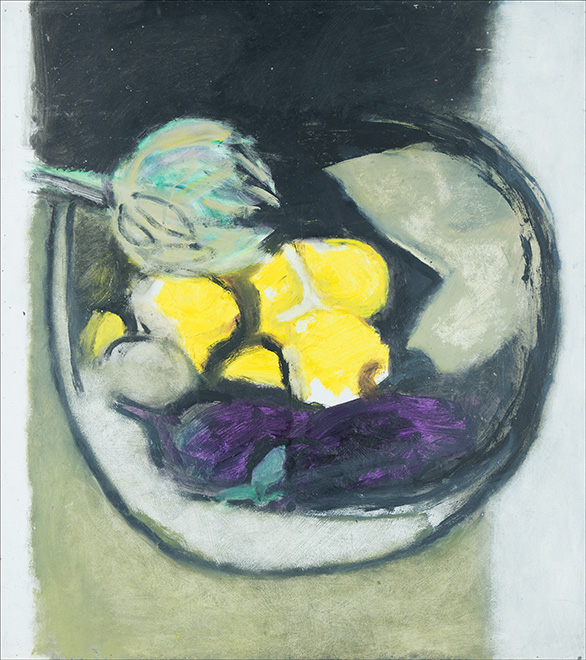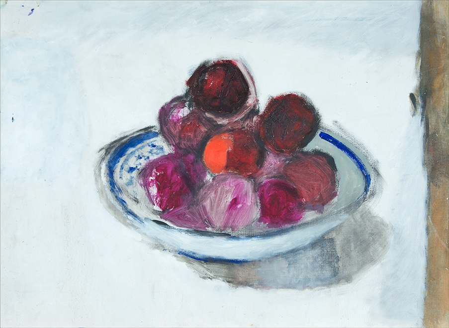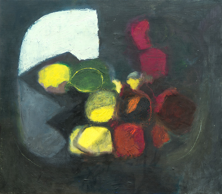 Ich stand schon immer in großer Abhängigkeit vom Licht, egal ob bei einem Figurenbild oder einem Stillleben. Die Schüssel mit den unterschiedlichen Früchten benötigt bei mir immer eine Licht und eine Schattenseite, eine Seite mit warmen Farben, der eine mit kalten Farben gegenübersteht. Die Beleuchtung muss von einer Seite ausgehen. Das ist für mich erst die Voraussetzung, um überhaupt ein Stillleben malen zu können, und zugleich die Spannung und Anregung, die ich benötige, um in Schwung zu kommen.”